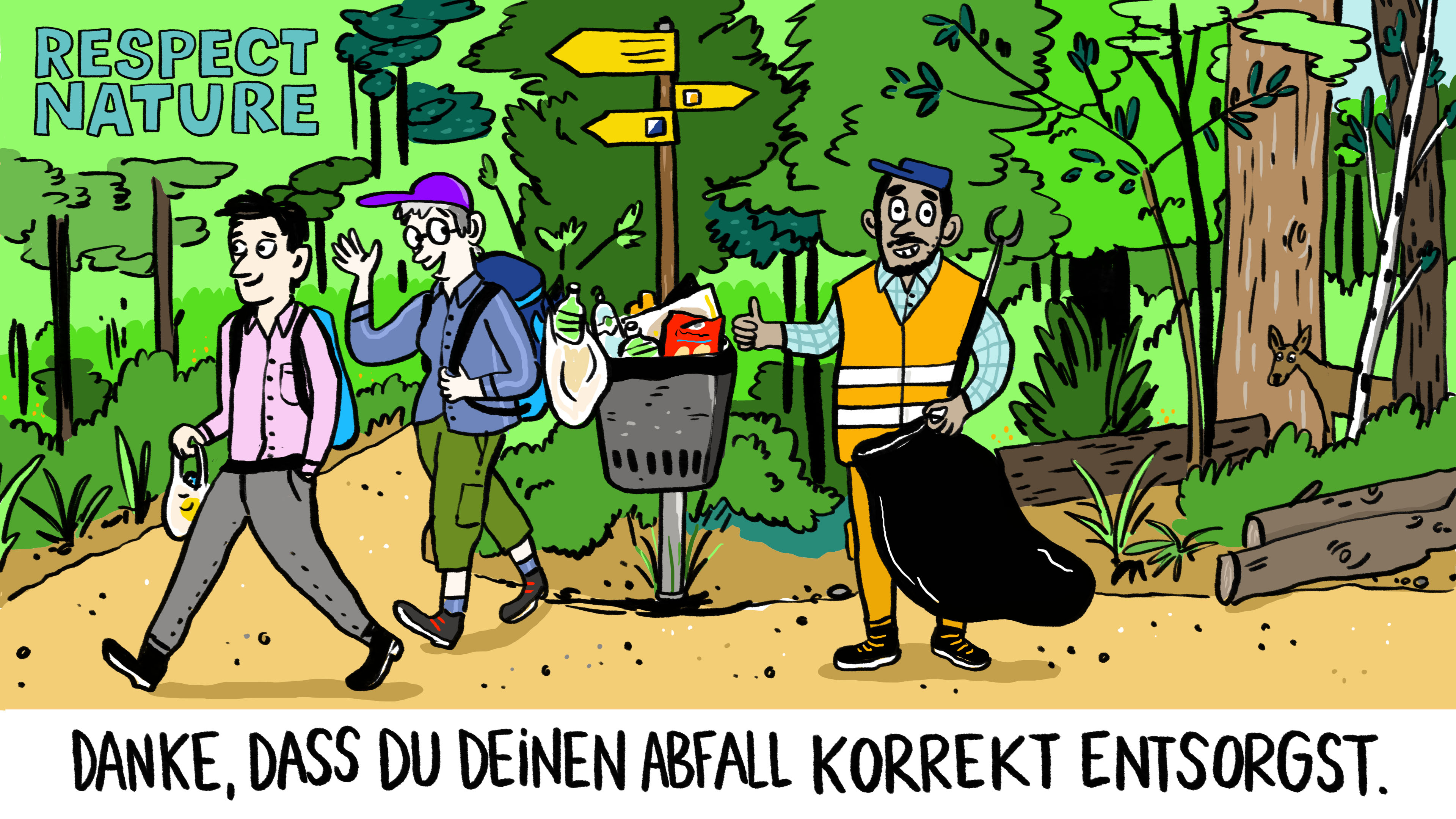 Freizeit in der Natur macht Spass. Ob beim Sport oder auf Ausflügen: Je weniger wir die Natur und die Lebensräume von Pflanzen und Tieren stören, desto besser. Deshalb halten wir uns an die 10 goldenen RESPECT NATURE-Regeln. Ob im Wald, auf dem Wasser oder in Naturschutzgebieten – die Regeln sind ganz einfach.